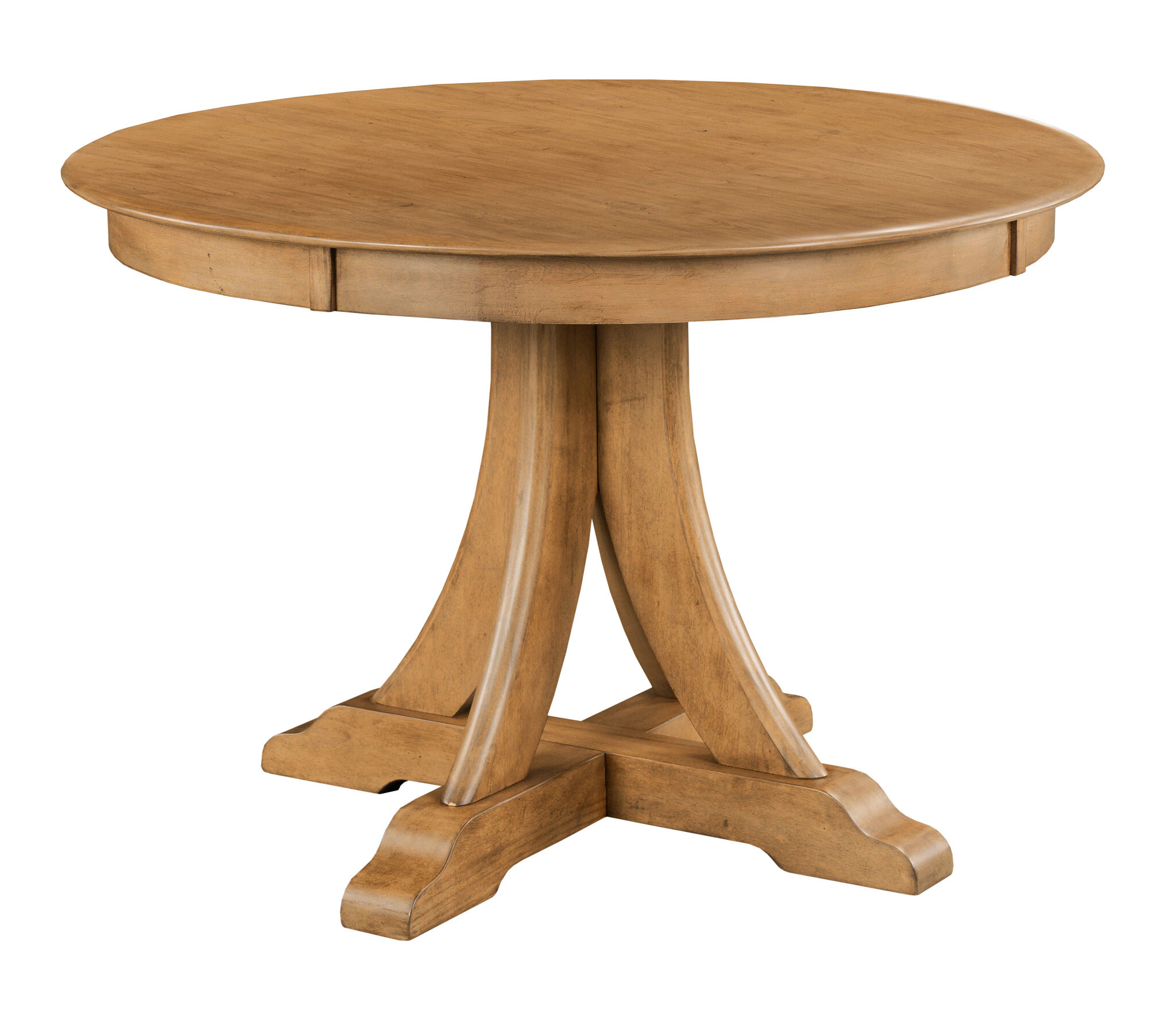 The Kafe Casual Dining collection is all about options to fit your breakfast nook or other casual dining space. The table shape and size we find most popular is the 44 inch round. Here it is shown with the classic quad base and finished in a light Latte tone. If your dining area calls for something a little different, this table is also available in a 54 inch size and both sizes can be ordered in either the Latte or Mocha finish. This solid wood dining table features solid Alder which is an ideal wood for tables and cabinetry. The top also features our KinGuard performance top coat. This protective finish helps to protect the finish from common food spills by allowing added time to get things cleaned up. To learn more about Kincaid Furniture's KinGuard Performance Finish, please visit the video library link at the bottom of the page and select the KinGuard video.