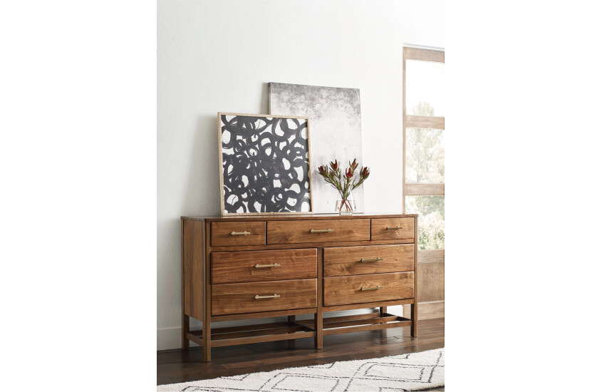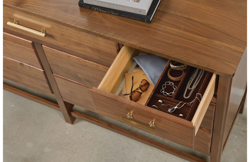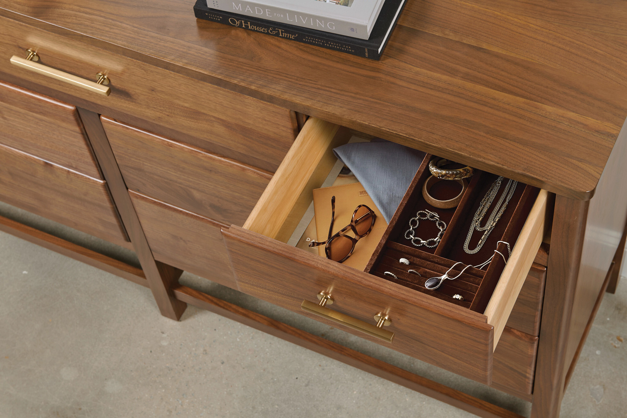 Few natural materials have a personality as pleasing, interesting, and unique as solid walnut. Long considered America's most premier material for cabinetry and architectural woodworking, American Black Walnut is best utilized in larger pieces where it can be fully appreciated. The Wonderland Dresser creates an ideal design to showcase this beautiful material. Among the seven drawers are four large drawers ideally sized for folded clothing, one medium drawer across the top and two smaller drawers to help keep thing organized and accessible. The Wonderland dresser also includes integrated levelers in the feet.