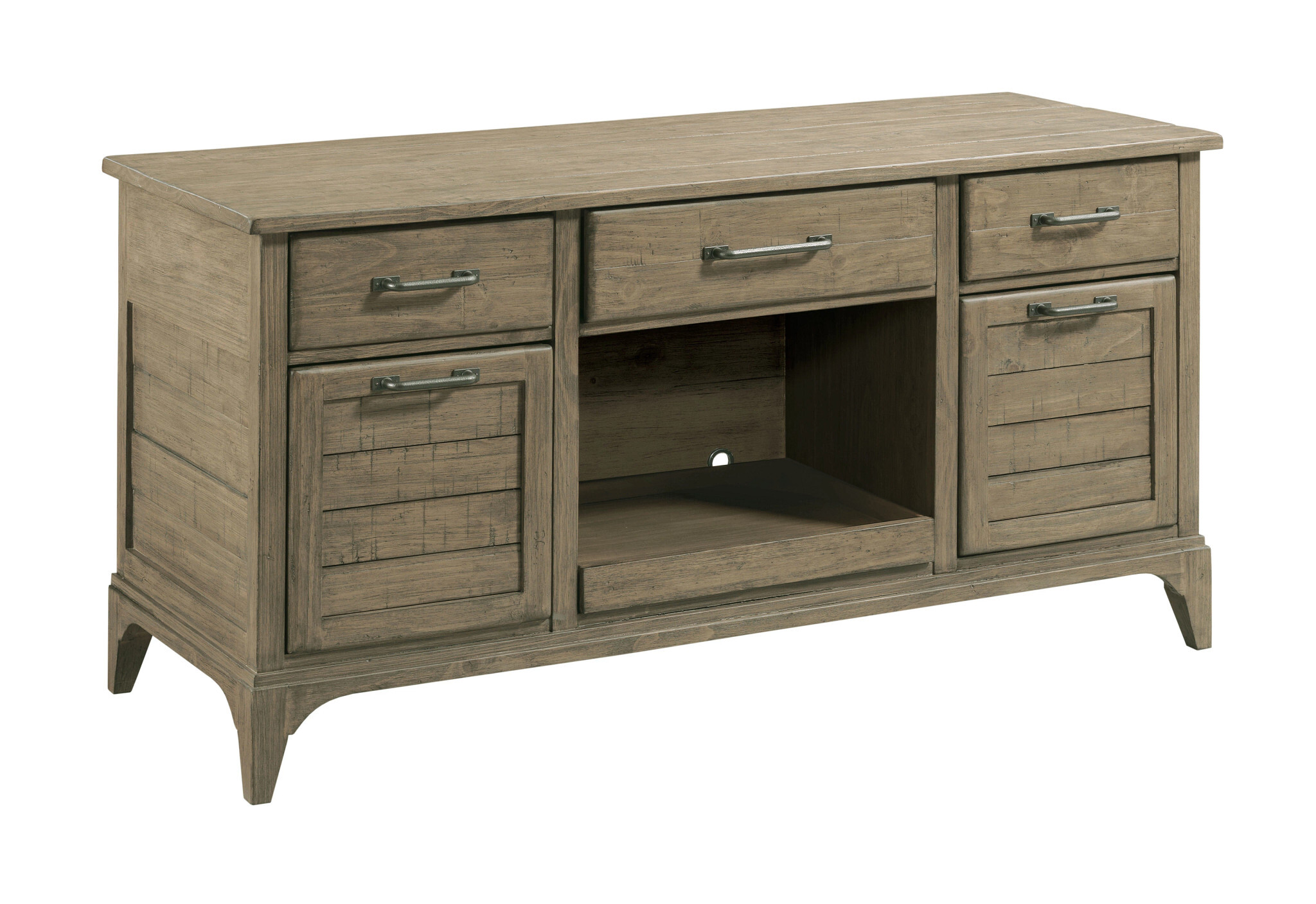For added storage and office space organization, the Farmstead Credenza is a great supporting piece. Instead of a knee hole this credenza provides a space for a printer that is easily accessible with its added pull out tray. We find this particularly helpful in the never ending cycle of changing printer toner/ink. And unlike printer cartridges, the Farmstead Credenza is made to last for generations.