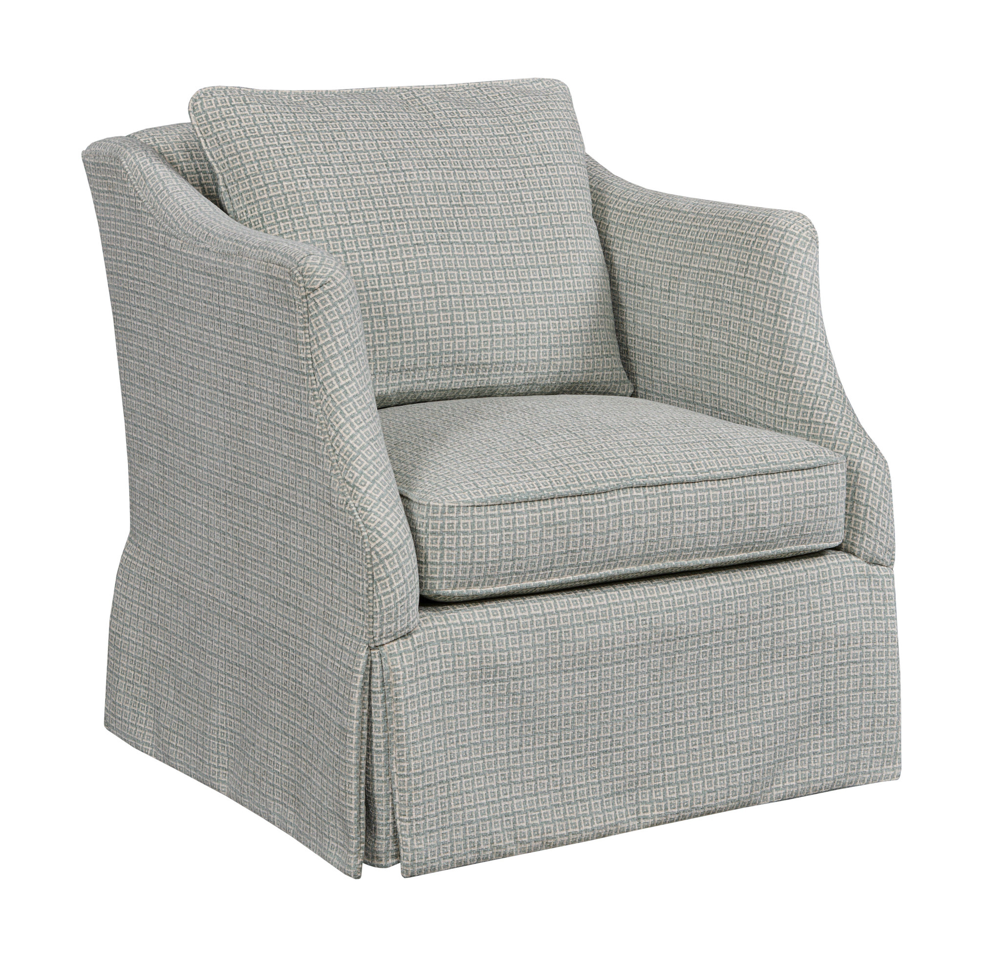 The Aubree swivel glider makes style comfortable. With tall arms and subtle shapes it works well in a variety of spaces. The dressmaker skirt gives it a clean, flowing design and adds a sense of elegance in applications from traditional to contemporary decor.