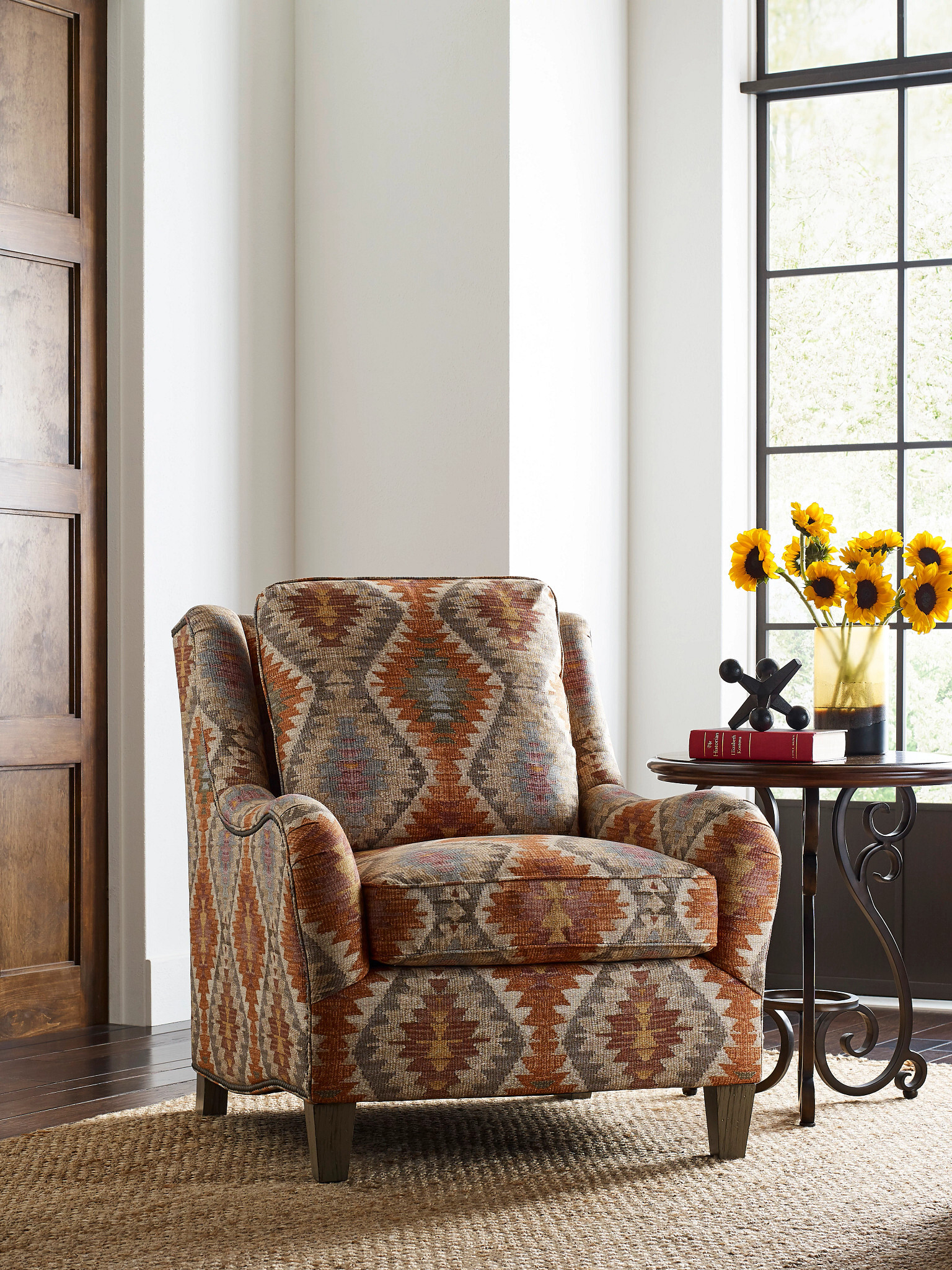 For a chair that blurs the lines between comfortable lounge chair, club chair, and decorative accent chair, look no further than the Emerson from Kincaid Furniture. This accent chair is designed with a stylish, sculpted arm with subtle influences of traditional English arms and transitional flared arms. The outer arm is trimmed with nailhead that can be ordered in a choice of colors. To accompany the chair, a matching ottoman is also available for the Emerson.