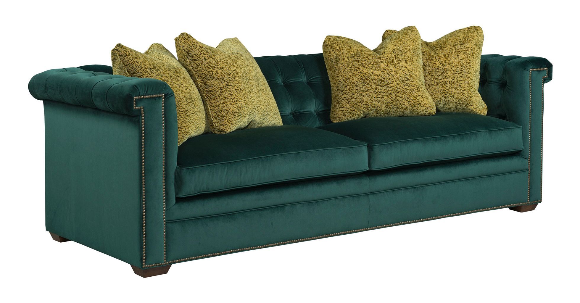 The Kingston adds a fresh key arm style to the classic chesterfield sofa. Our smaller sized nail-heads outline the arm shape to keep the look crisp and tailored. The Kingston is shown here in the larger, 101 inch length. It is also available in a 90 inch version as well as a complete assortment of sectional configurations.