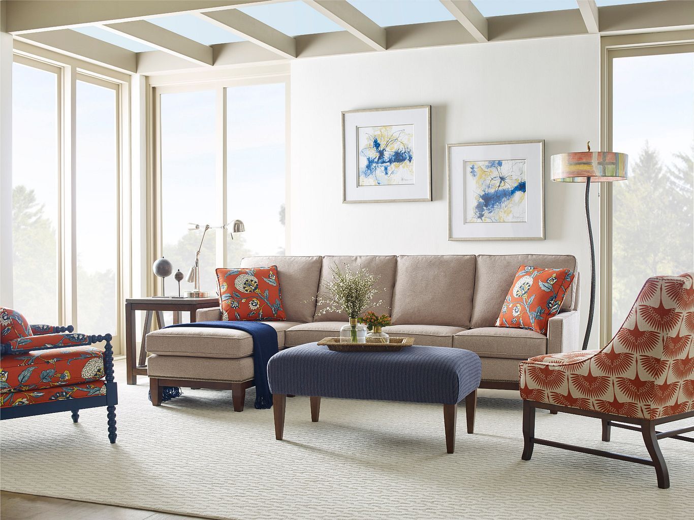 An accent ottoman can be a color coffee table alternative. Our custom ottoman program offers the key choices necessary to fit any space. Choose from tapered leg or turned leg, choose a wood stain or Premier Color leg finish, and apply any fabric from our on-trend assortment. We also offer a choice of sizes and an optional lift top for extra storage.