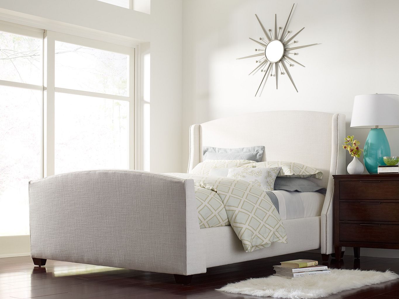 The Westchester upholstered bed combines flowing lines accentuated with nail-head trim for a distinctive but flexible style. It is available in King, Queen, and California King sizes and can be specified with a matching footboard, with a low footboard, or with the optional storage bench footboard.