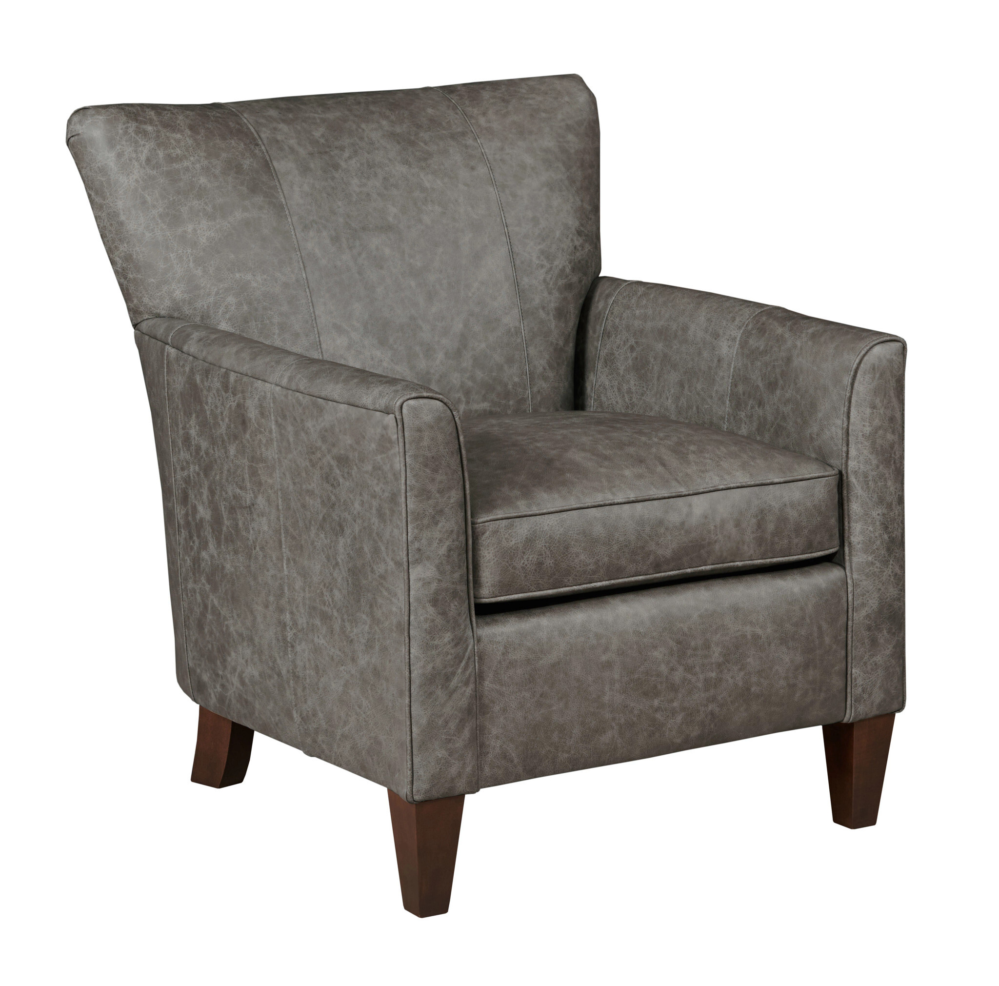 For a simple chair that can work in nearly any space few match the flexibility of the Wyatt. This accent chair is scaled to be used as an accent in a larger seating area, in pairs, or as a stand alone in a study or bedroom. It features clean lines, a tight back, and slightly taller legs. It is shown here in leather but is also available in fabric.