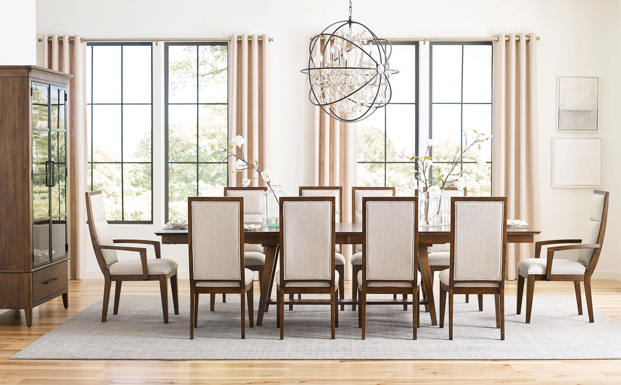 One of the more modern pieces of furniture in the Abode collection is the Zane Trestle Dining Table. Measuring 42 inches wide and 80 inches long without leaves, it can be extended up to 120 inches long with both included leaves in place. When fully extended the Zane can accommodate 10 place settings . It also includes our KinGuard Performance Finish to help protect against the everyday spills common in a dining space.