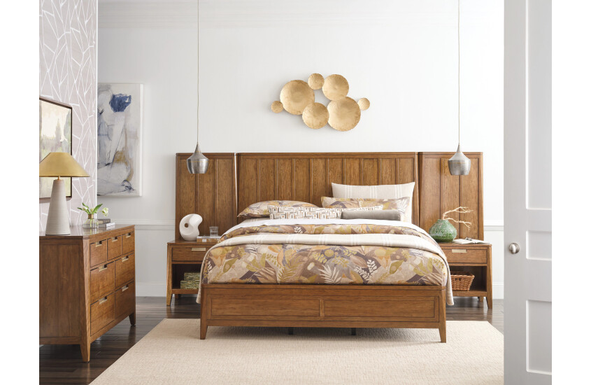 The Aspire Lineage Panel is the perfect bedroom centerpiece for showcasing the natural beauty of solid cherry. With the solid wood boards crafted into the design such that the wood grain runs vertically, the design is unique while retaining a sense of elegant simplicity. In keeping with one of the major themes of the Aspire collection, the Lineage Panel Bed features the beveled post design. This element also gives a clean connection point to add the Aspire Wall Panels (optional) which can flank the headboard and create a finished backdrop for either of the Aspire bedside pieces.