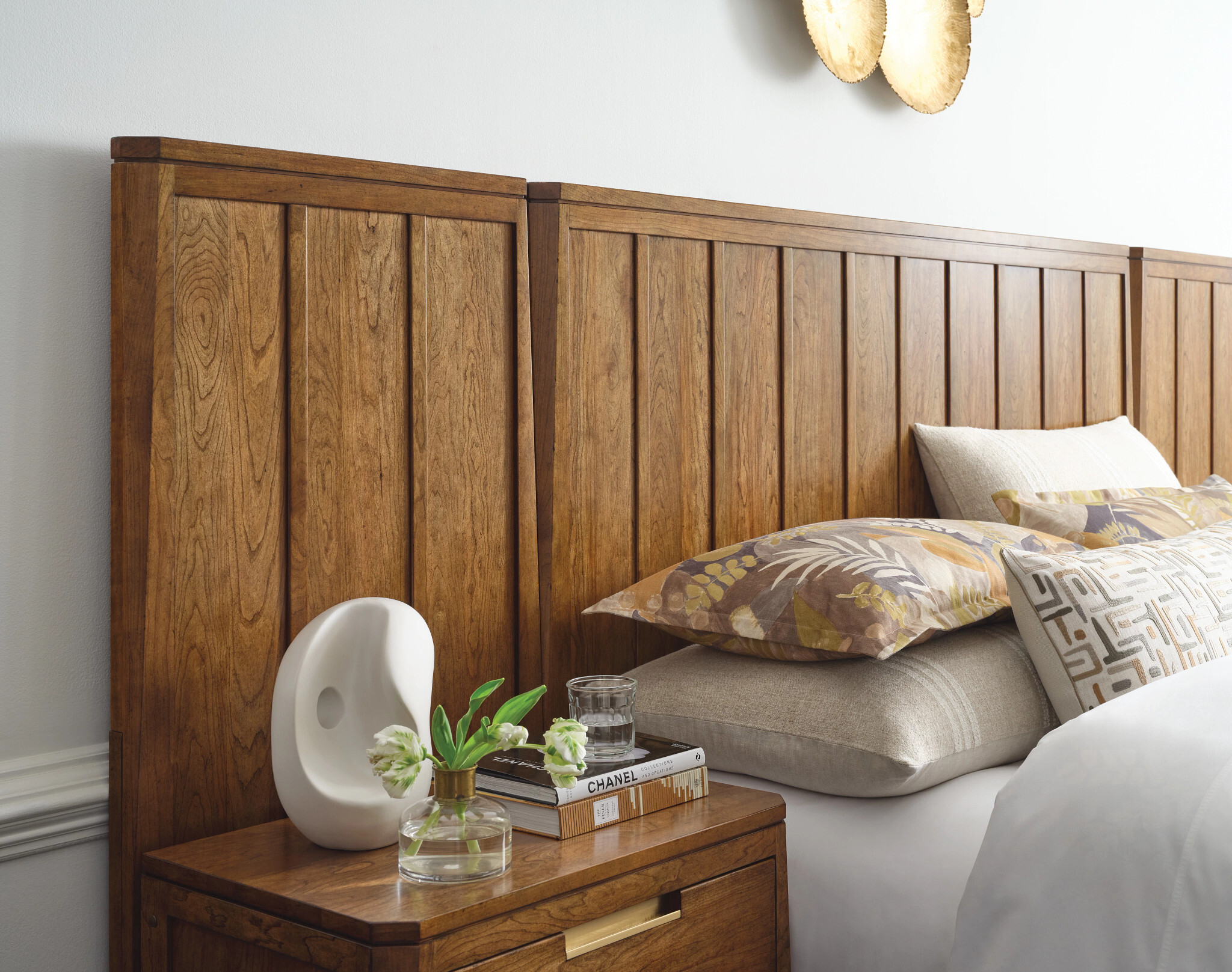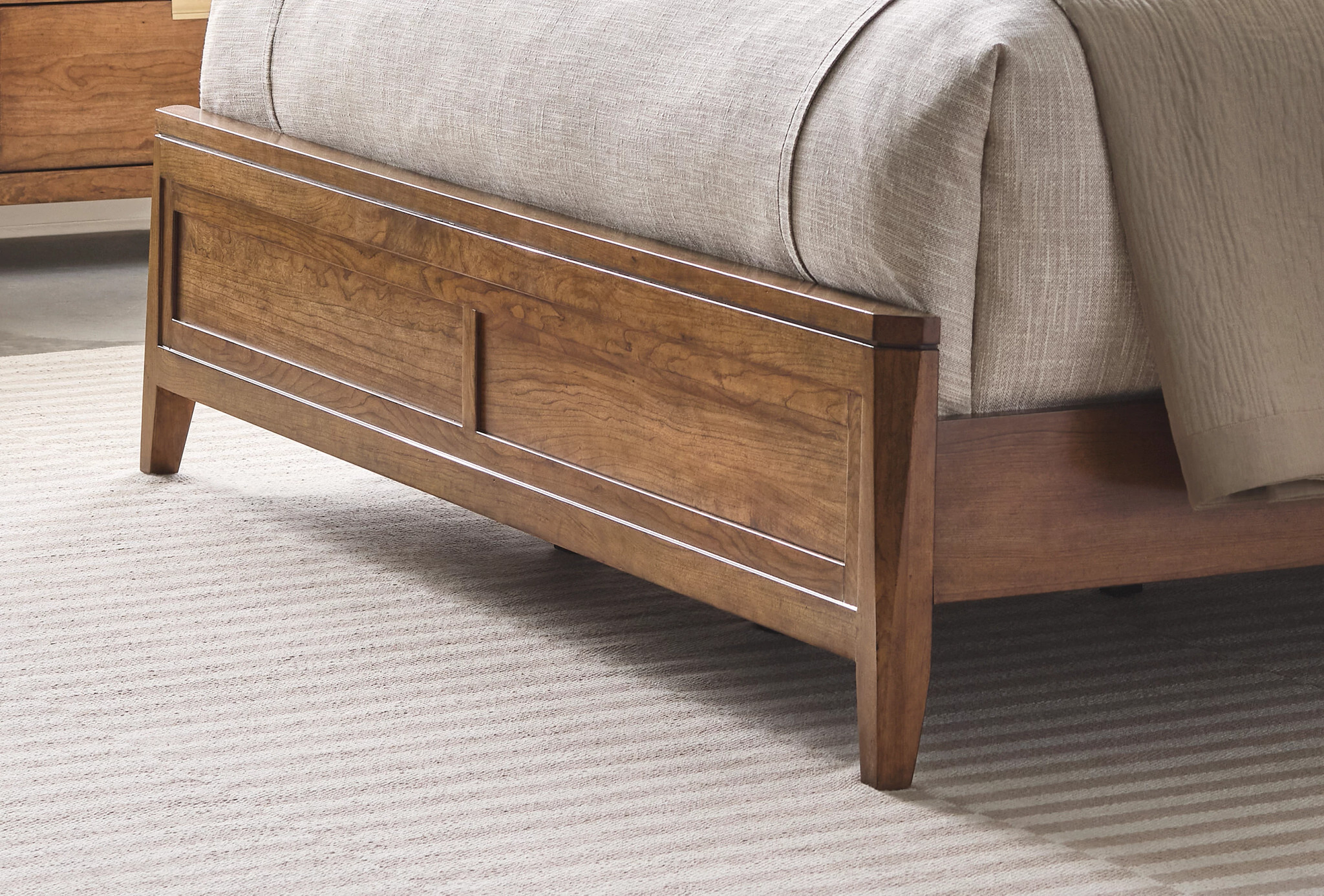 The Aspire Lineage Panel is the perfect bedroom centerpiece for showcasing the natural beauty of solid cherry. With the solid wood boards crafted into the design such that the wood grain runs vertically, the design is unique while retaining a sense of elegant simplicity. In keeping with one of the major themes of the Aspire collection, the Lineage Panel Bed features the beveled post design. This element also gives a clean connection point to add the Aspire Wall Panels (optional) which can flank the headboard and create a finished backdrop for either of the Aspire bedside pieces.