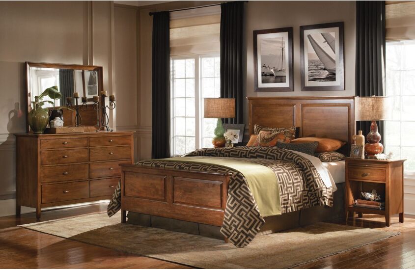 Leaving room for the solid wood to stand out, the Cherry Park Panel Bed is a timeless design for those seeking clean lines. It features framed, raised panels in the headboard and matching footboard. Or for additional storage, it can be configured with the optional storage footboard. It is available in queen, king, and California king sizes.