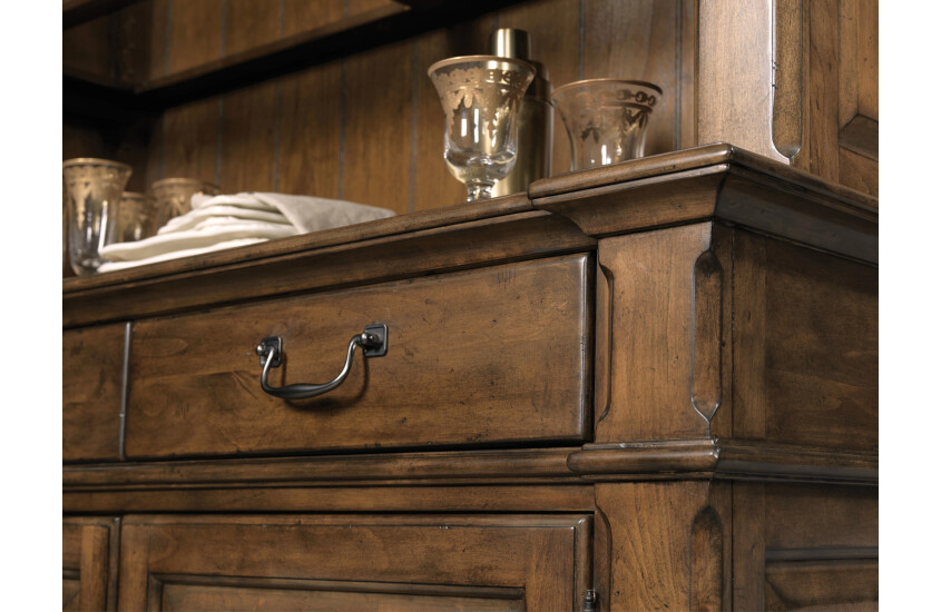 Paired together, the Monte Buffet and Hutch offer a beautiful focal piece for the dining and give the added vertical balance in homes that have taller ceilings. Where the Monte is different from traditional china cabinets is in its casual, open design. Additional details add to the time-honored charm of this unique solid wood piece with its wood framed glass shelves, saw-tooth shelf supports, and framed end panel construction. It is simply a beautiful statement piece.