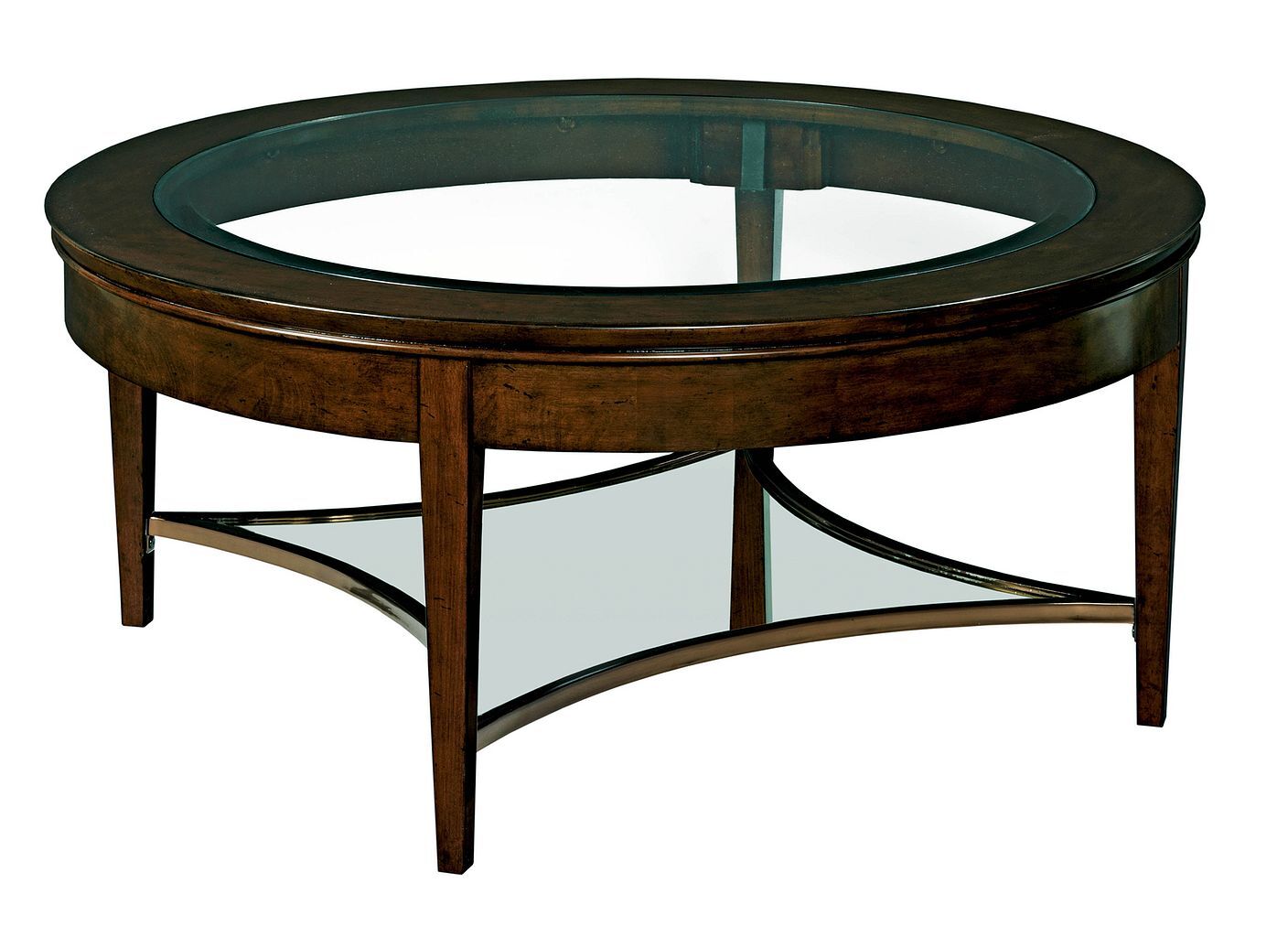 A complete different living room option, the round Aura glass cocktail table has two tiers of glass with subtle metal trim. The shape makes it a great option for everything from medium sized sofas to sectional designs.