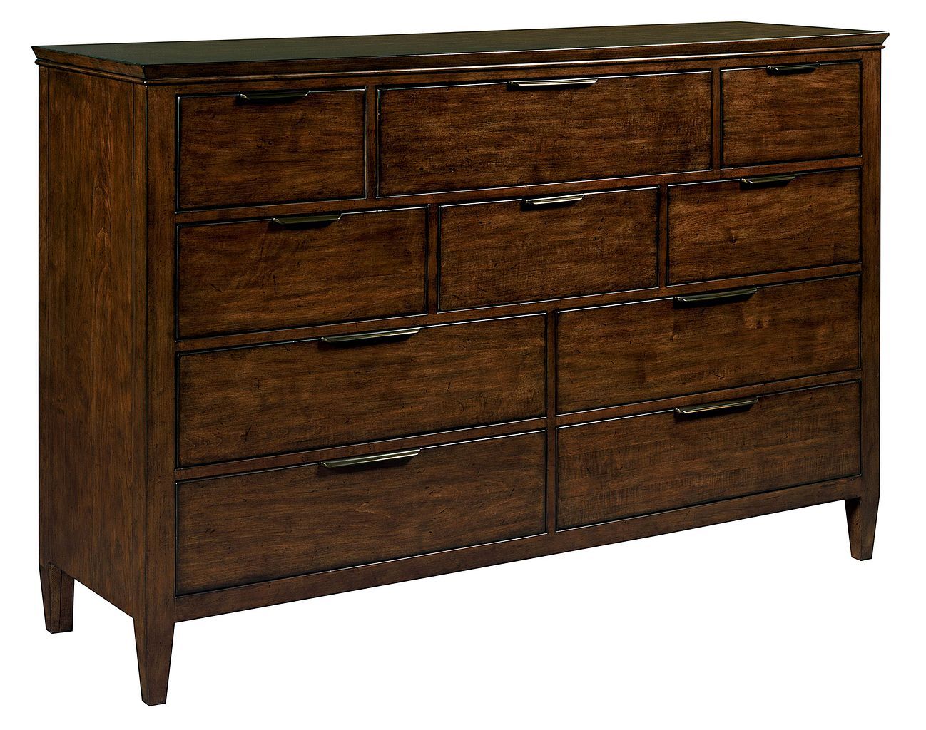 The solid wood Luccia Bureau is great for storage with four larger, full-depth drawers below and six more mid-sized drawers artfully arranged above. The top center drawer also features a flip down front making it ideal for use with a media component.