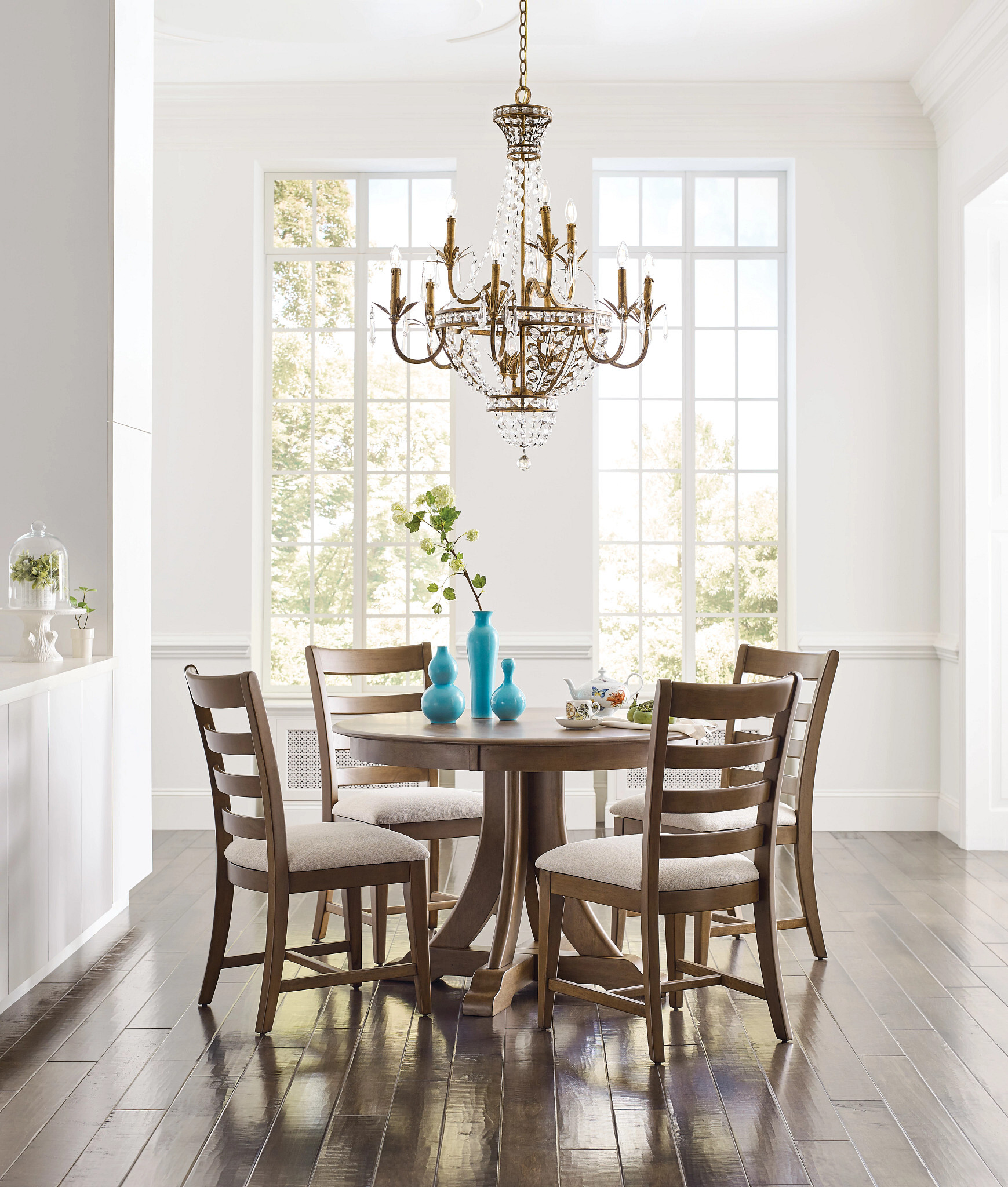 The Kafe Casual Dining collection is all about options to fit your breakfast nook or other casual dining space. The table shape and size we find most popular is the 44 inch round. Here it is shown with the classic quad base and finished in a light Latte tone. If your dining area calls for something a little different, this table is also available in a 54 inch size and both sizes can be ordered in either the Latte or Mocha finish. This solid wood dining table features solid Alder which is an ideal wood for tables and cabinetry. The top also features our KinGuard performance top coat. This protective finish helps to protect the finish from common food spills by allowing added time to get things cleaned up. To learn more about Kincaid Furniture's KinGuard Performance Finish, please visit the video library link at the bottom of the page and select the KinGuard video.