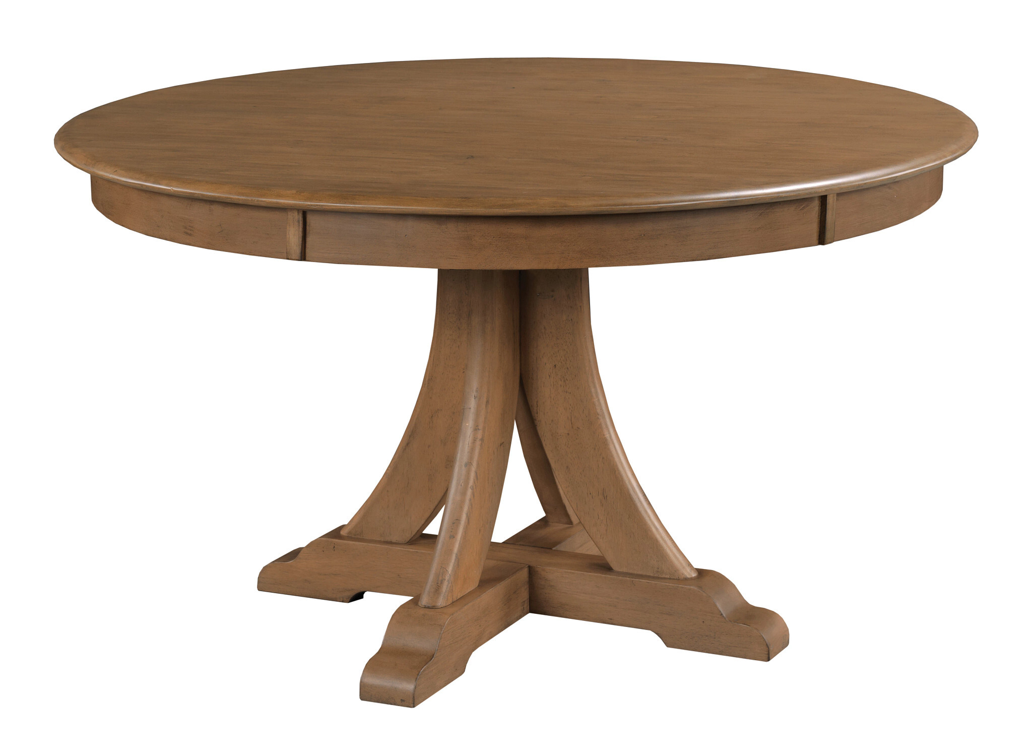 The Kafe Casual Dining collection is all about options to fit your breakfast nook or other casual dining space. A large portion of homes will find that a round shape and standard dining height make the most sense. Offered in both 44 and 54 inch sizes, our Classic Round Quad dining table is shown here in the lighter Latte finish measuring 54 inches. If your dining area calls for something a little different, this table is also available in a 44 inch size and both sizes can be ordered in either the Latte or Mocha finish. This solid wood dining table features solid Alder which is an ideal wood for tables and cabinetry. The top also features our KinGuard performance top coat. This protective finish helps to protect the finish from common food spills by allowing added time to get things cleaned up. To learn more about Kincaid Furniture's KinGuard Performance Finish, please visit the video library link at the bottom of the page and select the KinGuard video.