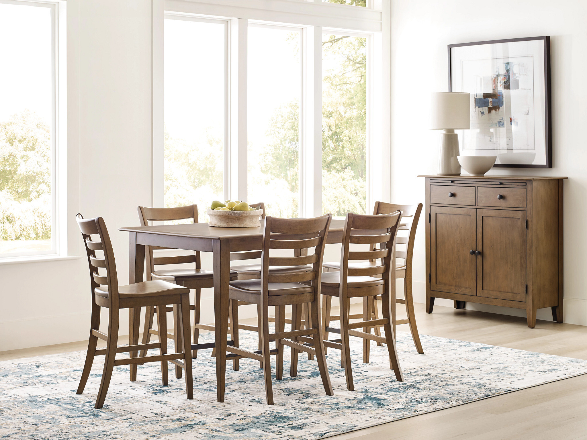 When considering casual dining tables, it is important to also think about dining height. With today's open concept living spaces, the range of suitable everyday dining options has significantly expanded. One consideration that is well suited to dining areas that can accommodate it is the counter height dining table. Measuring at 36" tall, counter height dining may seem only slightly higher than standard dining but this difference is enough to change the flavor of the space. This is especially the case as it relates to entertaining and gathering in what has become the social hub of the home. In the case of Kafe, the Tall Leg Dining Counter Height Table is the perfect tool for the job. Sized to seat up to six chairs comfortably, it's solid wood construction means that it can withstand the rigors of everyday family life. To literally top it off, we have added our KinGuard performance finish as an added safeguard against common everyday dining spills.