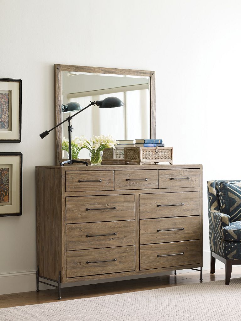A simple, clean mirror frame with a 'just right' scale keeps things casual and understated. A small nailhead detail speaks to old-world joinery while high-quality, beveled glass makes for a functional landscape or portrait hung mirror.