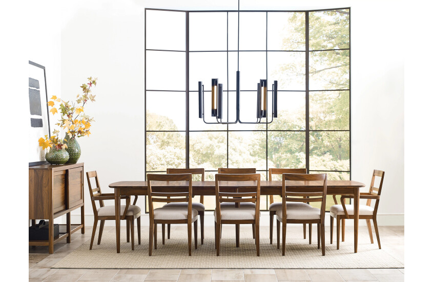 Named after the small town where Kincaid Furniture started, the Hudson Dining Table proudly declares its heritage. But what makes this leg table special is the carefully selected solid walnut that it is made from. When select grade walnut is used and finished in such a way as to not conceal its natural beauty, it truly has not substitute. The Hudson Rectangular Dining Table measures 76 inches in length in its shortest configuration. With two 20 inch leaves this can be extended to 96 inches or as long as 116 inches offering enough space to seat up to 10 chairs. The Hudson dining table also features Kincaid Furniture's KinGuard Performance finish. This specialized topcoat helps to provide some added protection in case of common spills so that the finish can continue to look great for generations.