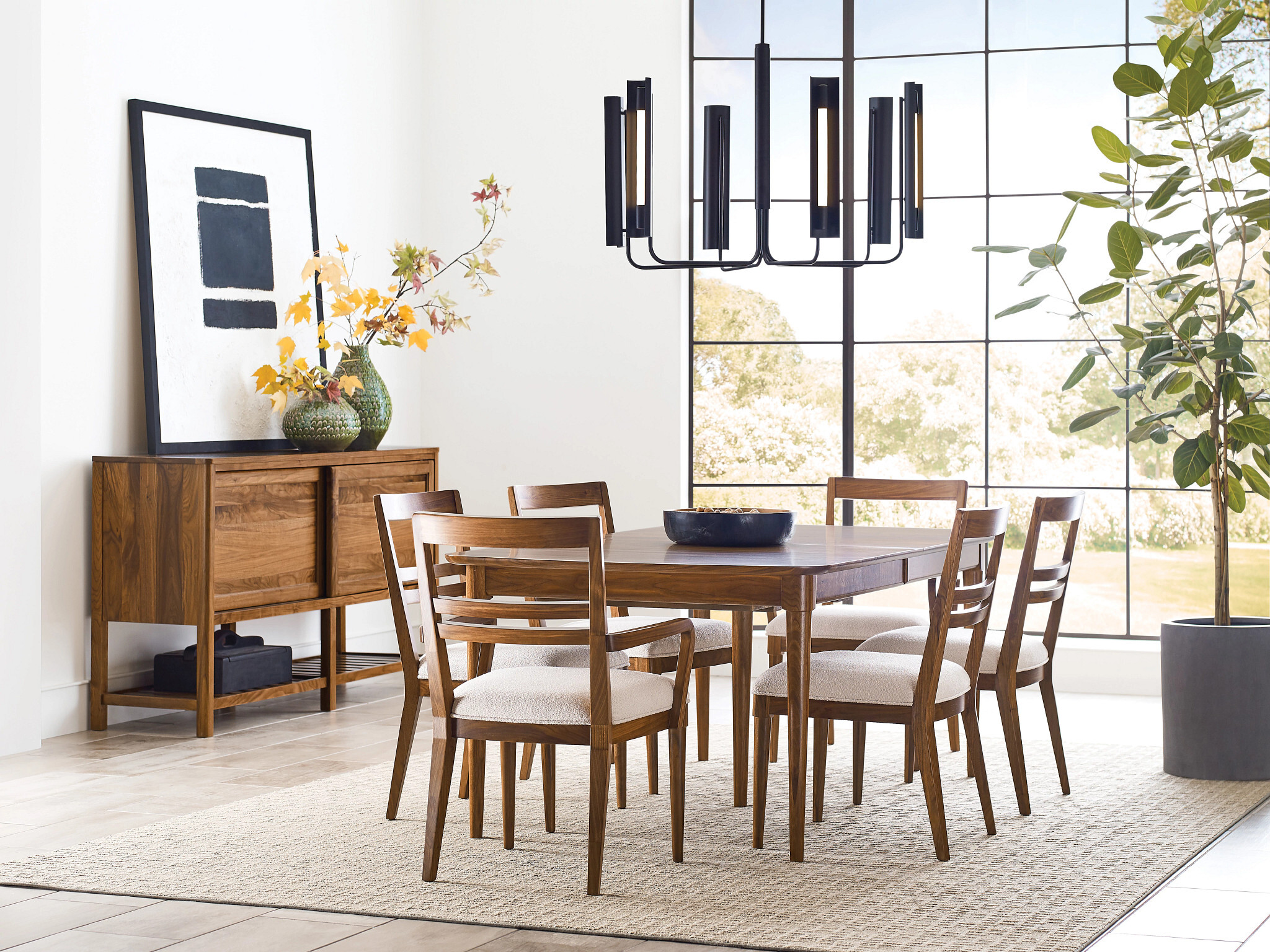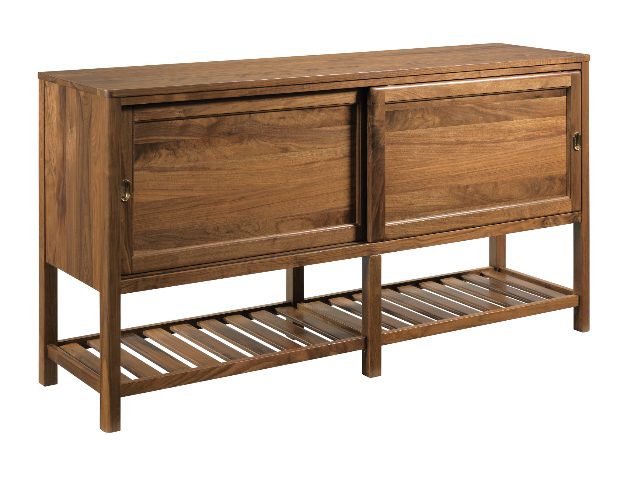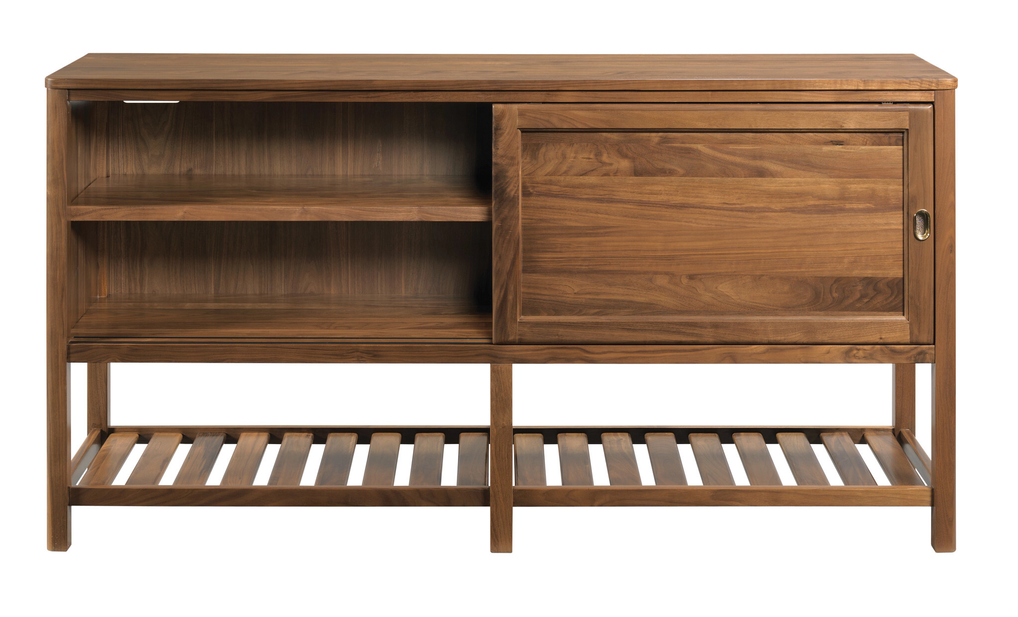 The Roanoke Buffet is one of the most most unique items in the Monogram Walnut collection. By utilizing sliding doors instead of drawers, this dining storage piece is able to better showcase the character of the solid American Black Walnut from which it is constructed. This design also creates a more transitional silhouette as it allows for visual length. From a function perspective, the sliding doors open to reveal two spaces, each with an adjustable (or removable) shelf.