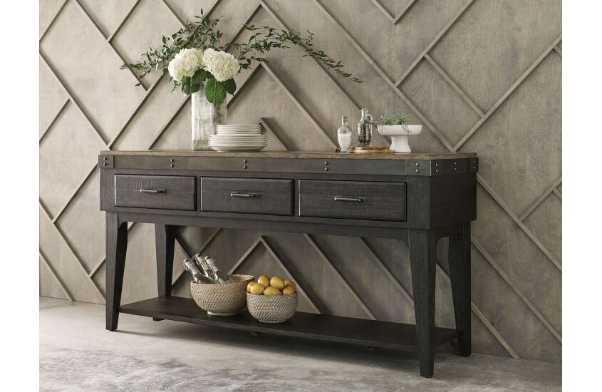 If you had to select a single word to describe the Artisan's Sideboard, sturdy would be a good option. It was designed with a style similar to more primitive, hand-made furniture resulting in strong construction and a casual character. It is made with solid New Zealand pine and trimmed in metal where the top joins the cabinet.