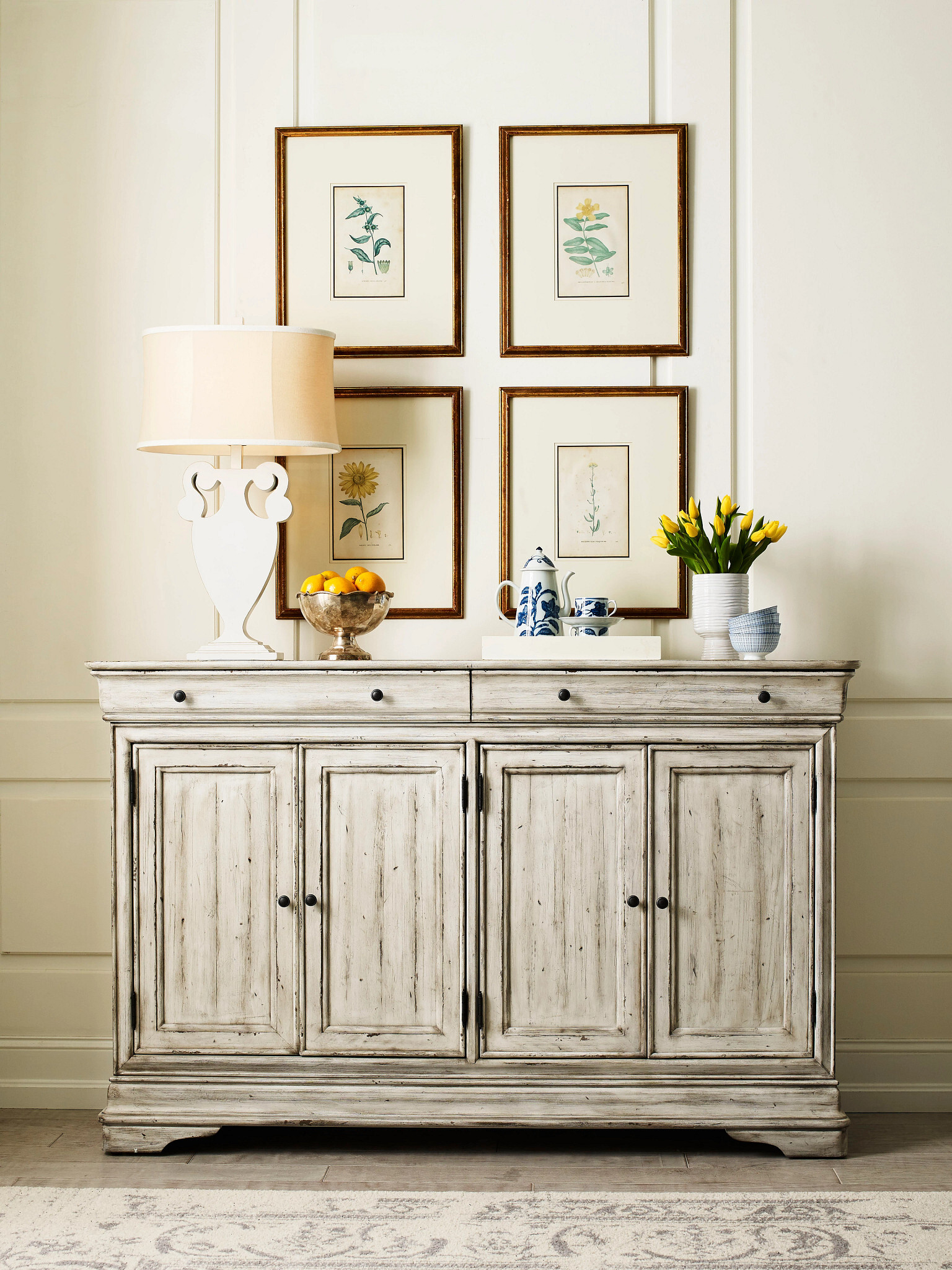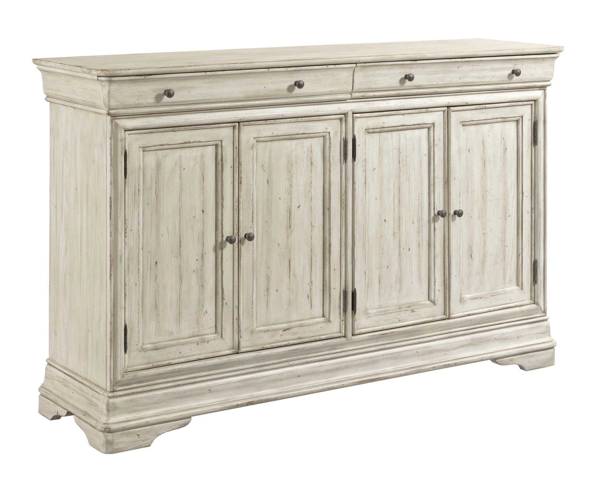 The Amherst Buffet is one of the most important pieces in the Selwyn collection. It works perfectly as a storage cabinet in the dining room, as a practical entertainment unit below a television, or even in bedrooms and entry spaces for its beauty and door storage. With adjustable shelves behind the doors and two drawers along the top, the Amherst makes a design statement in any decor!