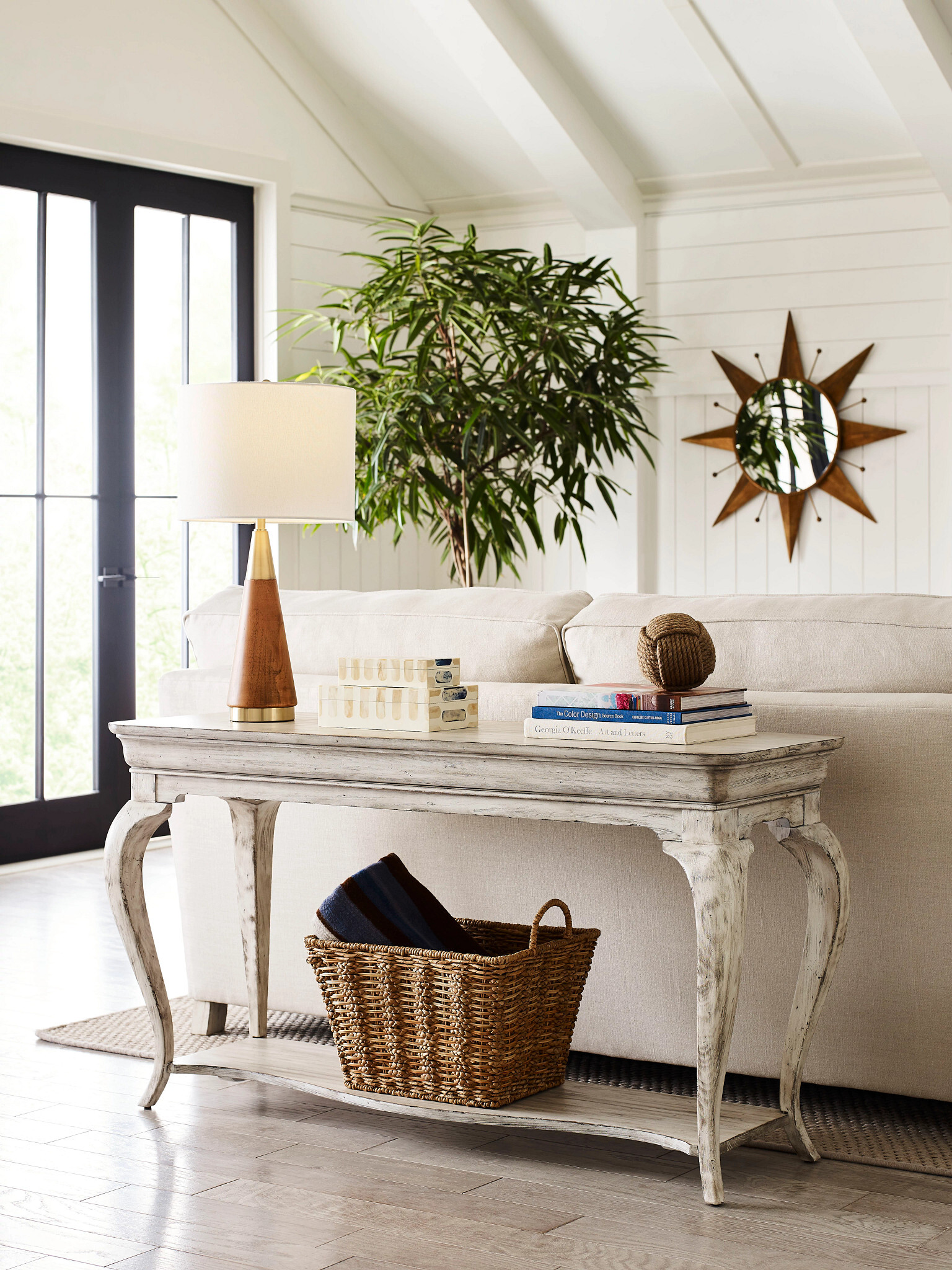 Designed as a sofa table but just as functional along a hallway or in an entry, the Kelsey Sofa Table offers plentiful style in a well-proportioned size and shape. Four solid wood cabriole legs and graceful curves make this understated addition an important item for the right space.
