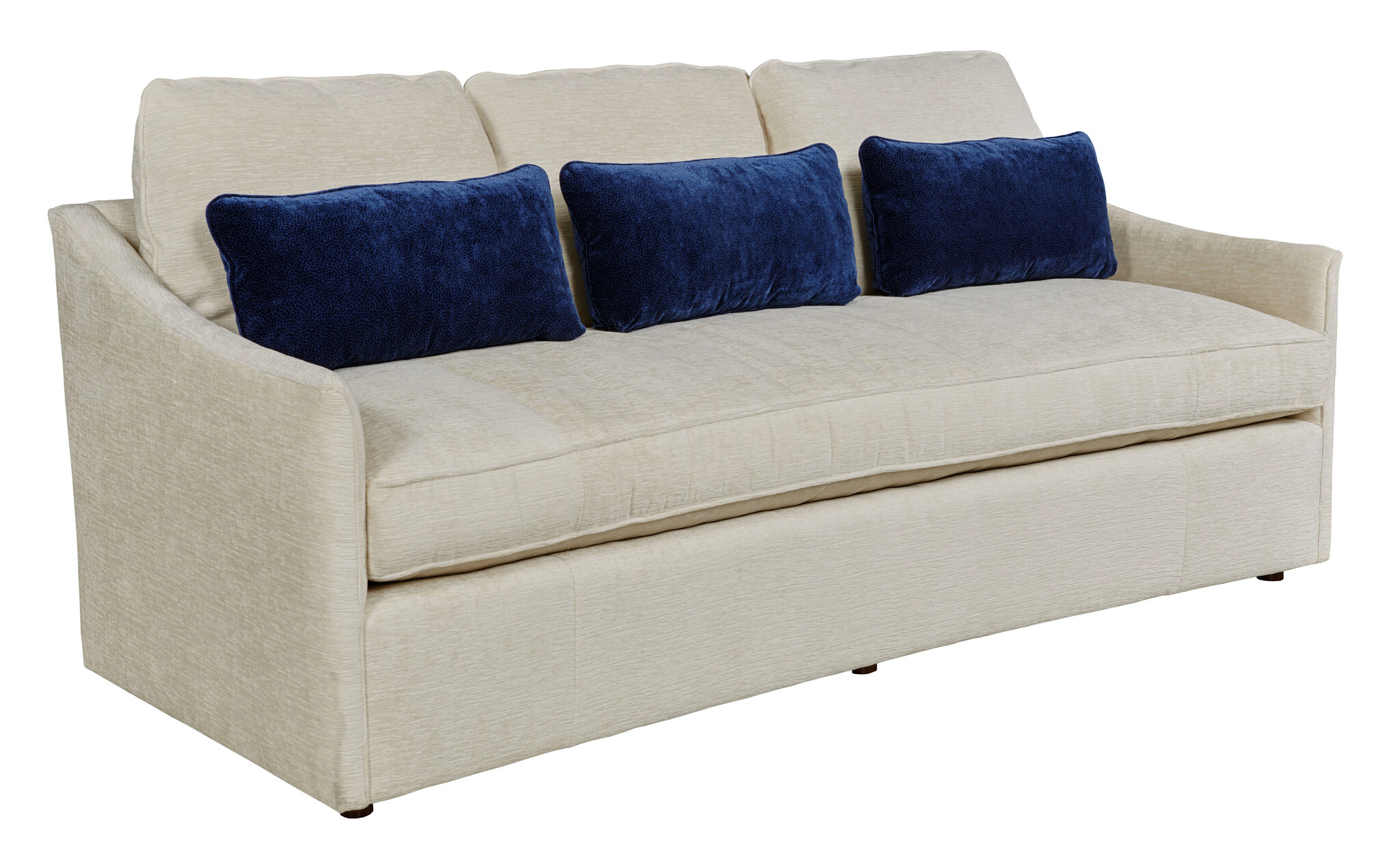 The Ari collection features complex yet graceful lines that make it stand out in subtle ways. An elongated curve along the length of the sofa is framed with crisply detailed arms that are trimmed in welt to accentuate the silhouette. The welt transitions to the outer edge of the arm where it curves upward to the back and around. This beautiful group offers a broad range of stylish configurations. Here it is shown with a bench seat and three back cushions that frame three bed pillow style kidney pillows. The kidney pillows are sized to match the inside arm and can be repositioned there and still look purposefully "just right".
