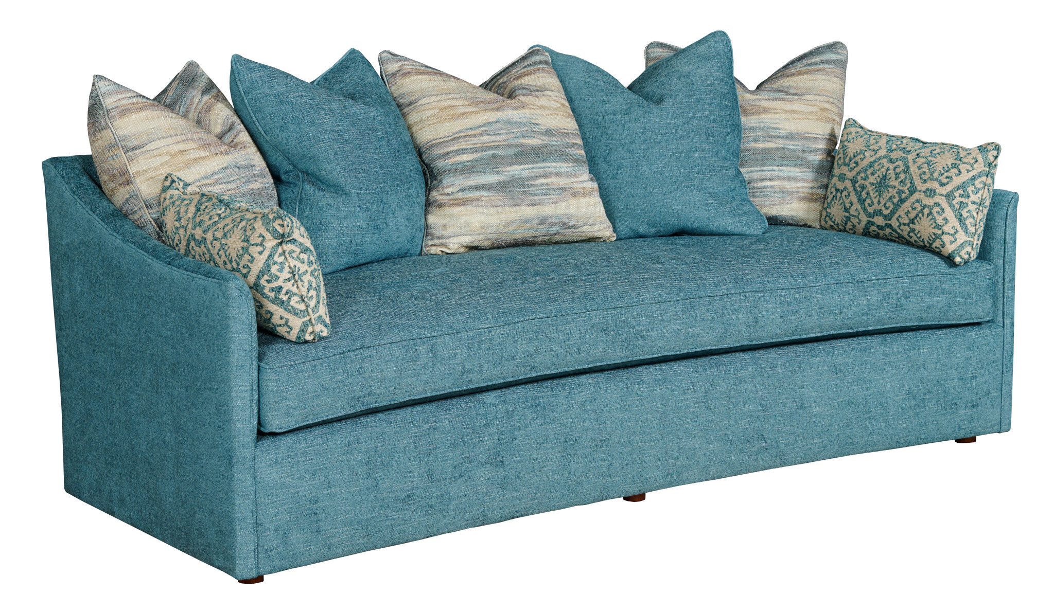 The Ari collection features complex yet graceful lines that make it stand out in subtle ways. An elongated curve along the length of the sofa is framed with crisply detailed arms that are trimmed in welt to accentuate the silhouette. The welt transitions to the outer edge of the arm where it curves upward to the back and around. This beautiful group offers a broad range of stylish configurations. Here it is shown with a bench seat and a multi-back pillow configuration. Two kidney pillows are included that are sized to match the inside arm dimension.