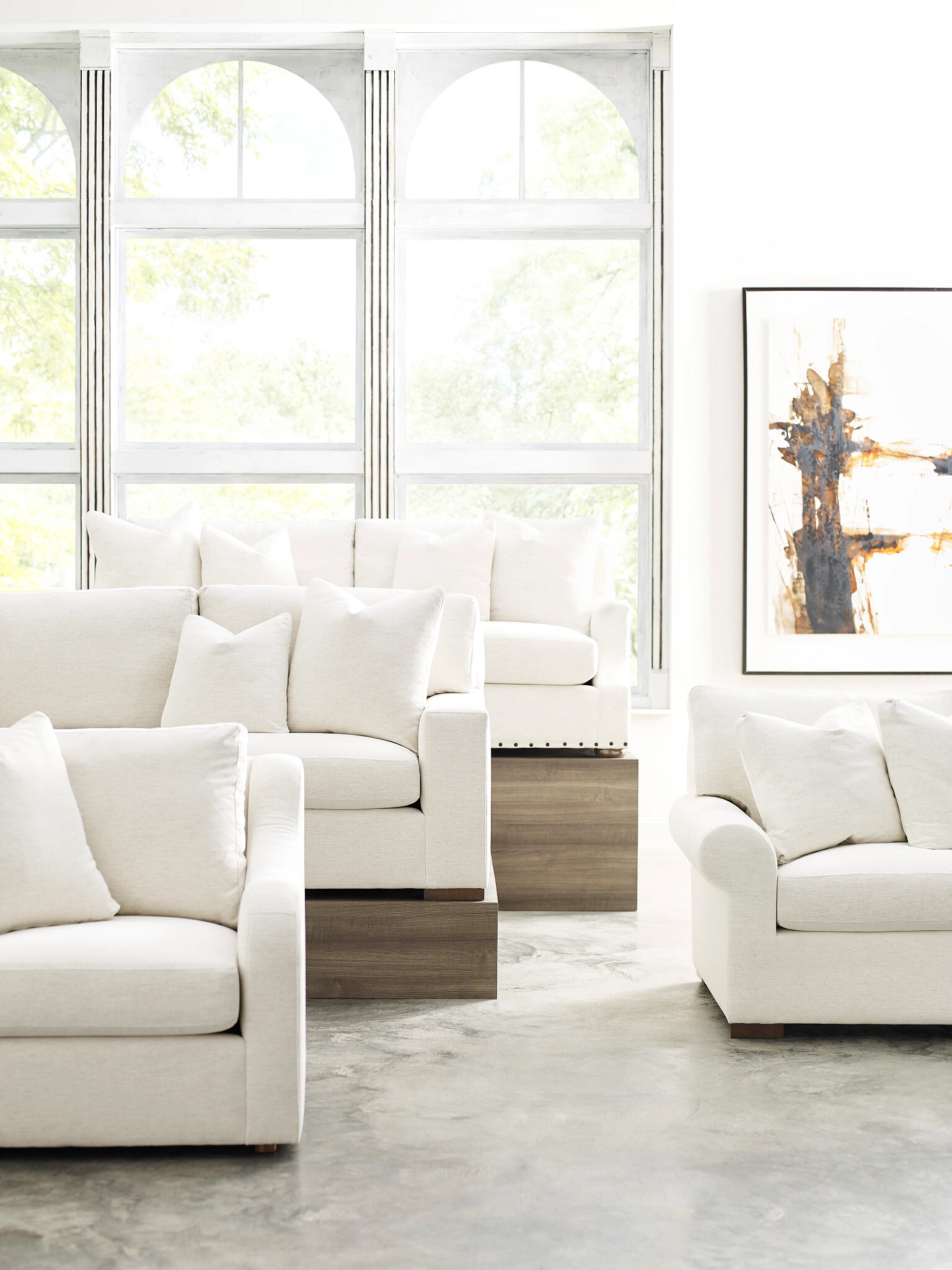 If a larger scale and a more lounging type of comfort are the goal, then look no further than our Comfort Select Sectional. Shown here in a wide Track Arm configuration, the Comfort Select sectional items measure 42 inches in overall depth which allows for an inside seating depth to be a deep 24 inches. This coupled with an 18 inch seat height creates a lounging experience that is both comfortable without being to deep to sit up in. And because it is part of the design-your-own Comfort Select program, it can be configured in a variety of lengths and layouts to fit your space. To customize and drape fabric on this sofa, please visit the Comfort Select tool in the Build-Your-Own section.
