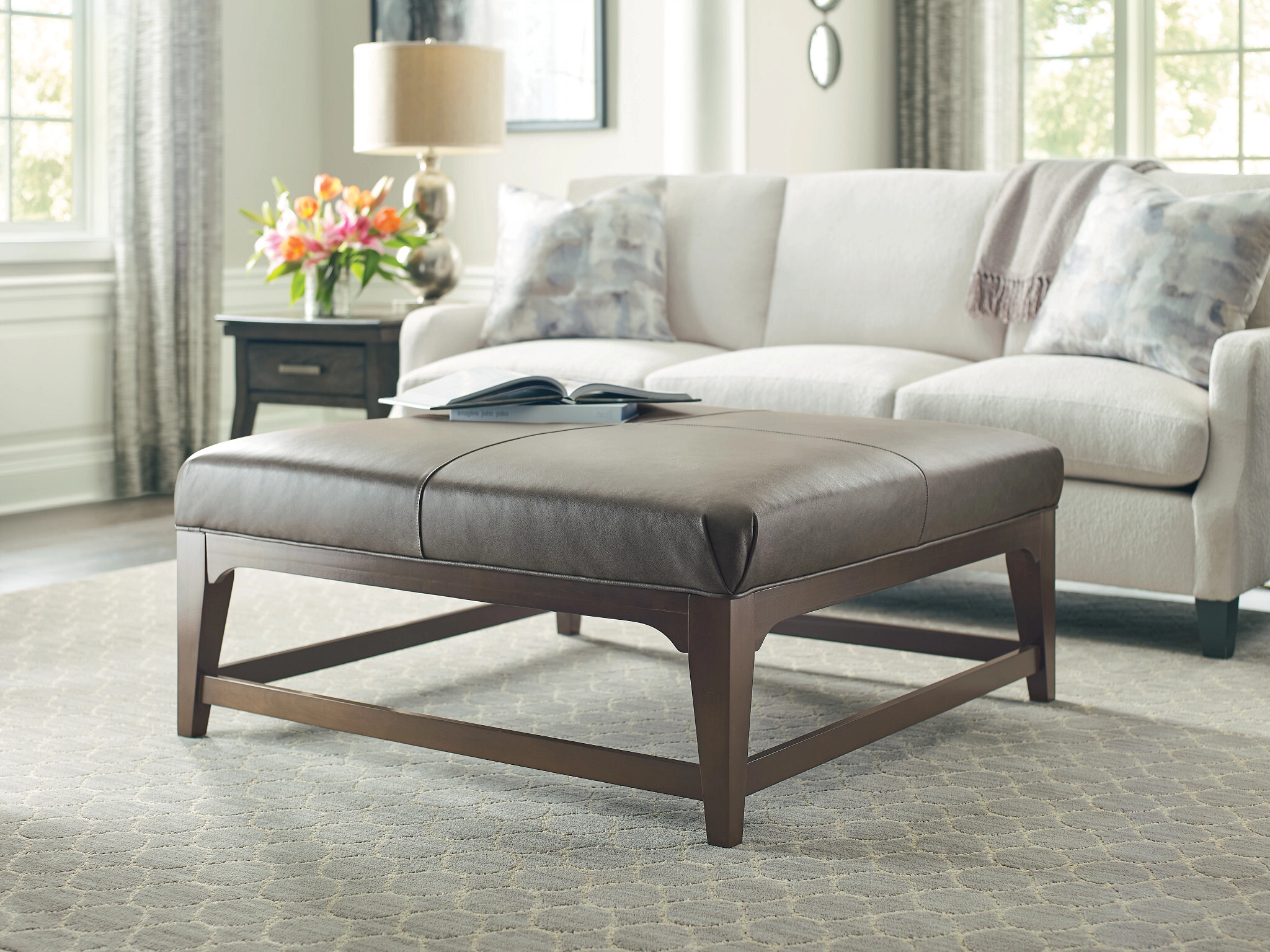 JAMISON SQUARE COCKTAIL OTTOMAN - LEATHER