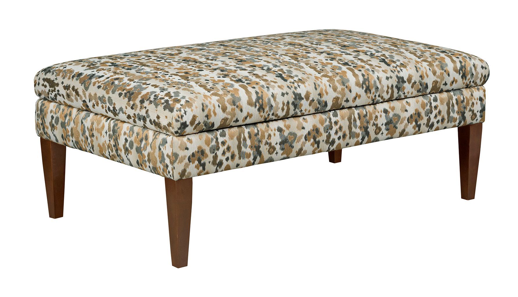 An accent ottoman can be a color coffee table alternative. Our custom ottoman program offers the key choices necessary to fit any space. Choose from tapered leg or turned leg, choose a wood stain or Premier Color leg finish, and apply any fabric from our on-trend assortment. We also offer a choice of sizes and an optional lift top for extra storage.
