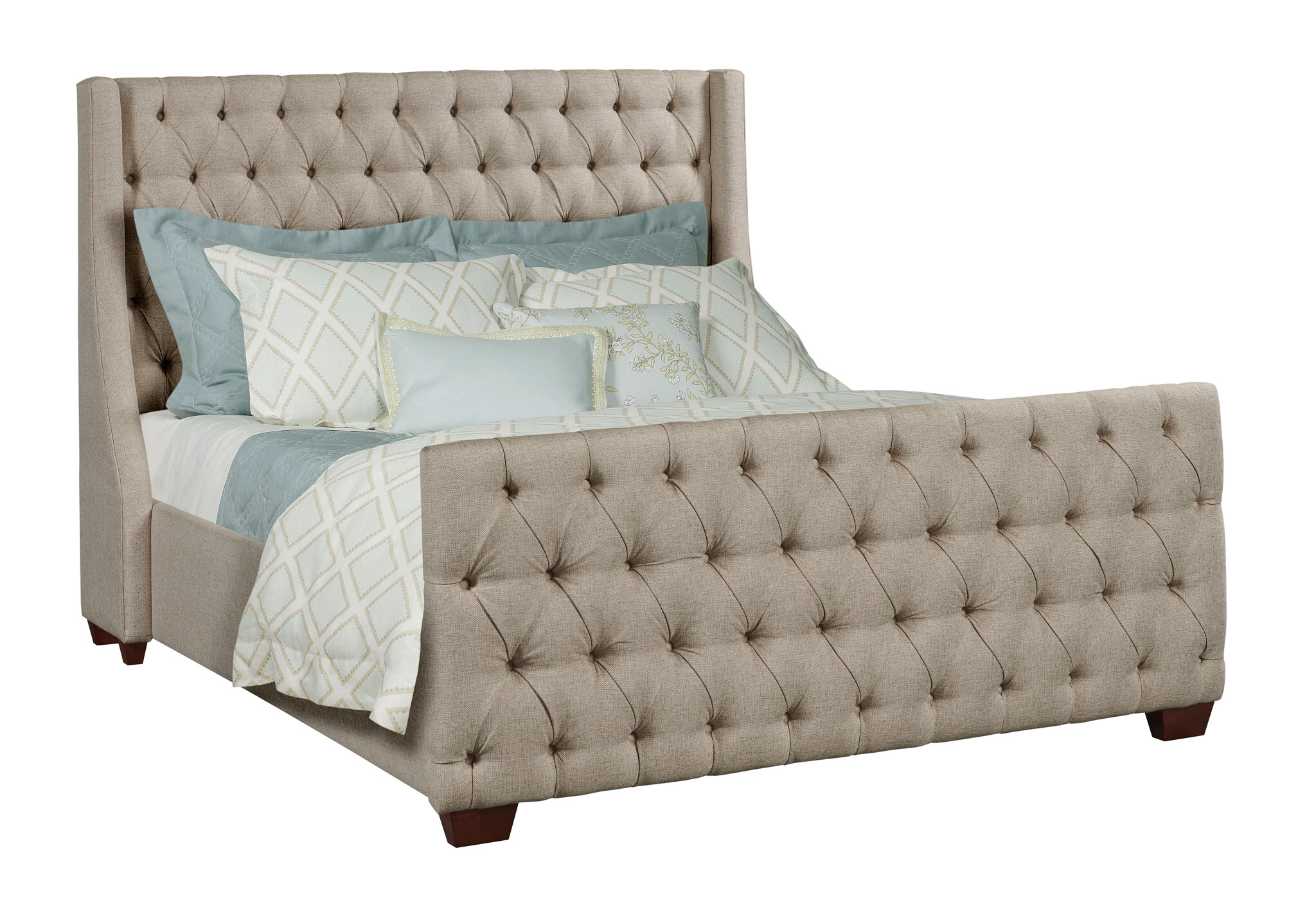 The Mia Upholstered Bed pulls together a few key elements for a unique and timeless design. The silhouette is that of a clean shelter bed mixed with the inviting comfort of a tufted upholstered bed. It is available in either Queen or King size and can be upholstered in any Kincaid Custom Upholstery fabric.
