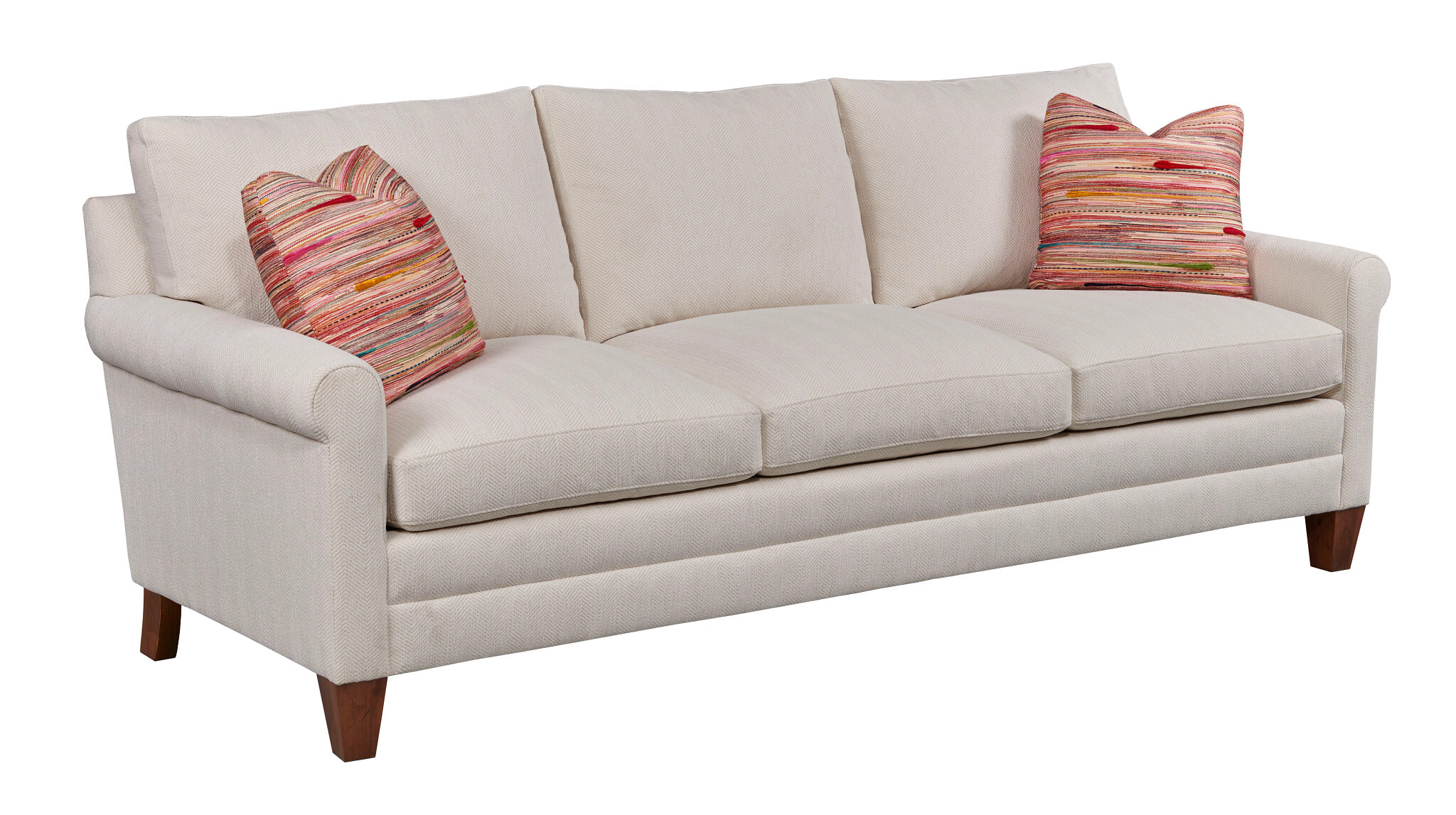 The 83 inch Studio Select Sofa offers a fresh take on the casual sock or rolled arm silhouette. As part of the Studio Select design-your-own collection, The Small Sock Arm shown here is paired with the option of top-stitch seams which removes welt. We love the simple, clean look of this top-selling configuration. It measures slightly wider or narrower depending on the arm selection. A key feature of Studio Select is the 36" overall depth with provides an inside seating depth of 22 inches and a neutral 20 inch seat height that appeals to most customers as it is both comfortable and supportive. As part of Kincaid Furniture's Studio Select design-your-own collection, it can be specified in lengths as small as 73" wide, it is available as a sectional, can be configured with five different arm styles, three different bases/feet, and a variety of other details to make it your own! To customize and drape fabric on this sofa, please visit the Studio Select tool found in our Build Your Own section.