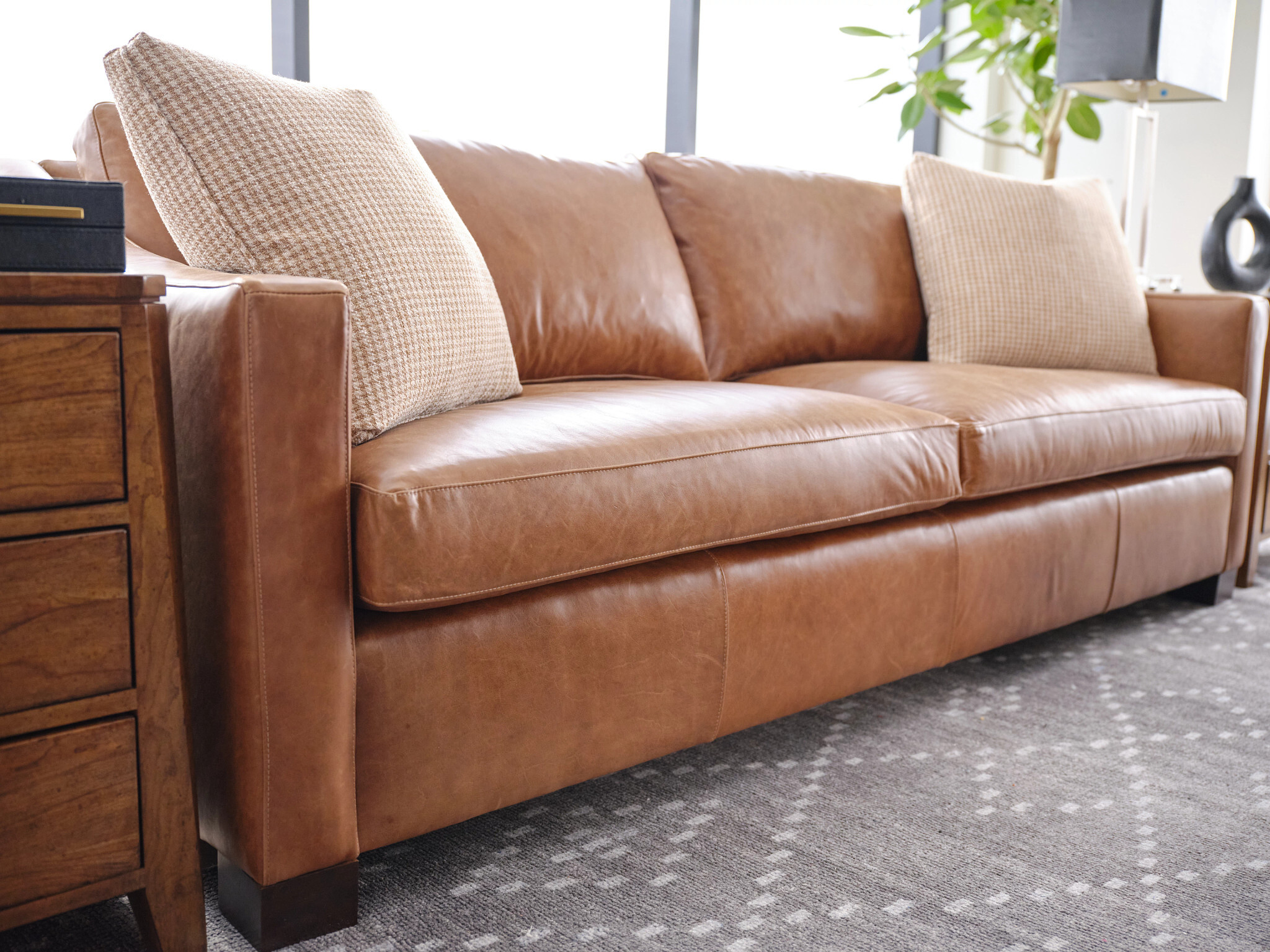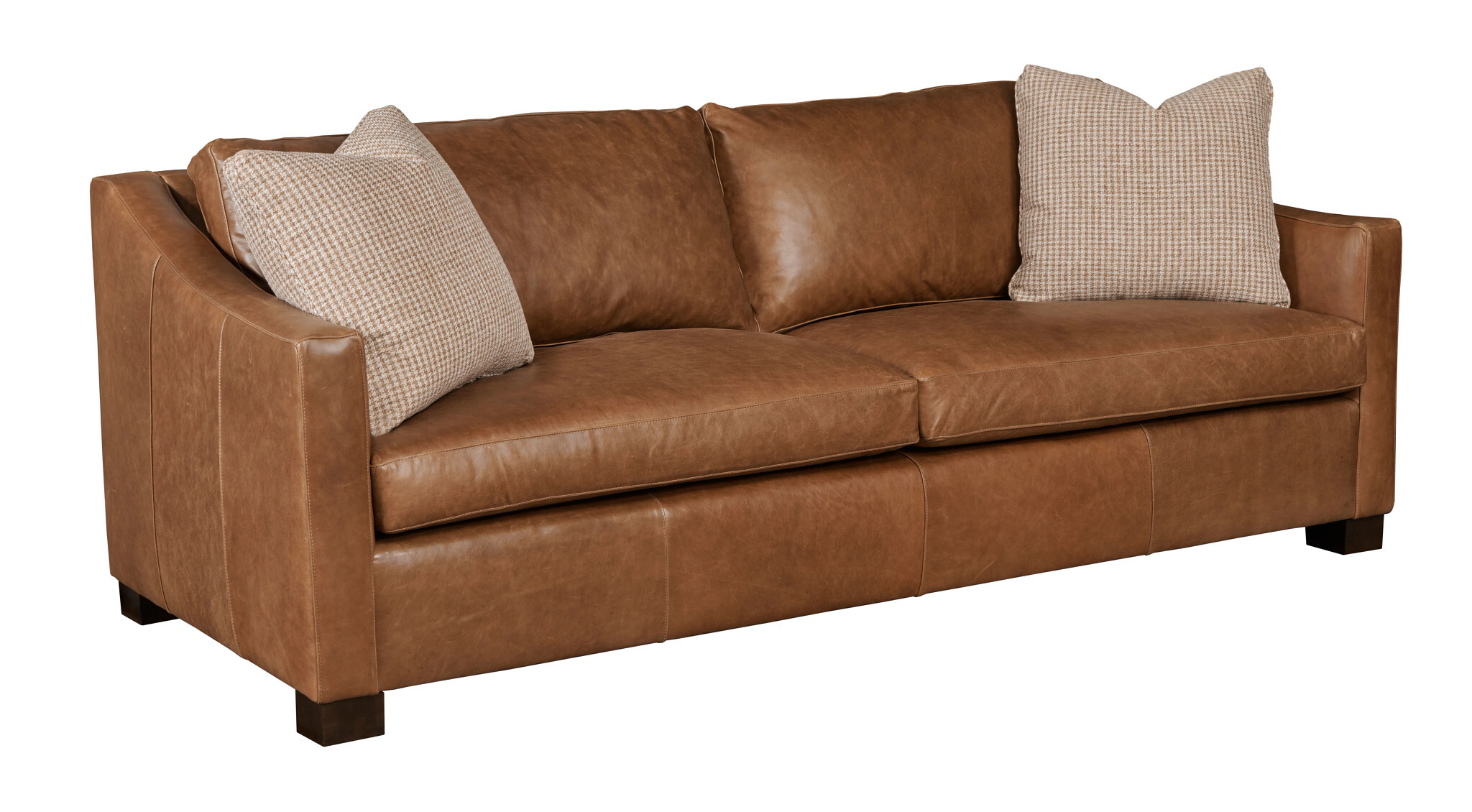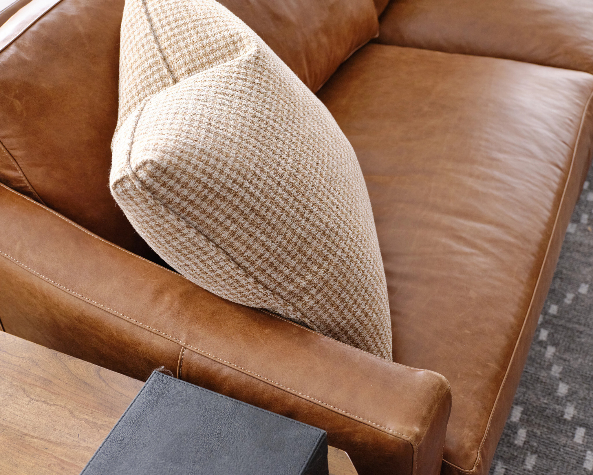 A favorite silhouette among our designers, the Verge Sofa in leather is great way to blend the more contemporary lines of a track arm with the authenticity and character of natural surfaces. Besides its stunning good looks, the Verge is one of those unique pieces that exceeds expectations when it comes to comfort. With two large seat cushions and a well-padded arm, this leather sofa makes lounging easy! The Verge is also available in a loveseat length, and as a matching chair, with available matching ottoman.