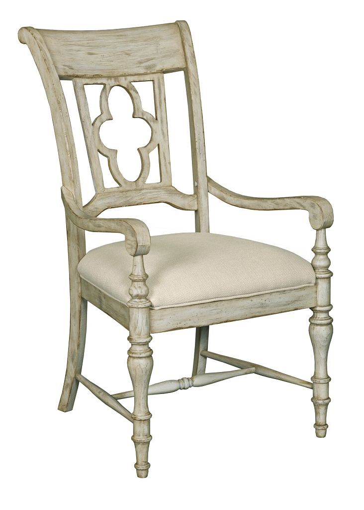 A stylish dining chair often times plays the biggest role in defining the style of the dining room. That is certainly the case with the Weatherford Side and Arm Chairs. Its quatrefoil design motif adds character that balances casual and traditional sensibilities. It also features a comfortable upholstered seat and stretchers on the base for long-lasting strength.