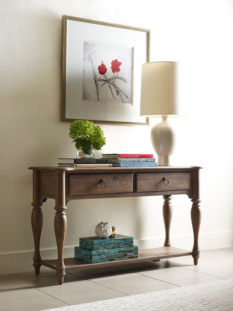 Sofa table might be a little too confining for such a piece. We see this solid pine table also used as an accent in a variety of spaces.