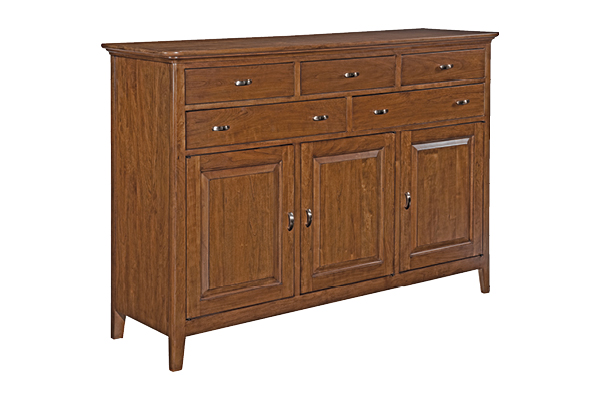 A modern interpretation on tradition made from solid cherry featuring a clean aesthetic. Cherry Park showcases simple lines, smooth, rounded edges, radius-tapered legs, and complementing champagne metal hardware in a rose-gold tone. This collection offers an array of storage features in a warm distinctive look that fits well in any home. In addition to modern features like our adjustable soft-close drawer glides, Kincaid utilizes the best of the old-world construction techniques. Such features include English Dovetails, mortise and tenon construction, floating tops and panels, full dust proofing, and multi-step hand-rubbed finishes.