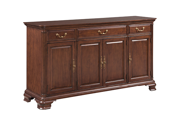 Like the classic tuxedo, Hadleigh establishes a sense of timeless refinement. The collection is crafted with hand selected, solid wild black cherry from the Allegany mountains with a finish that showcases the natural beauty of this sought after lumber. Within the collection is a balanced blend of the 18th Century classics with modern touches for an updated look. Intricate dental mouldings, reeded posts, bead-framed drawers and subtle hand carvings speak to the tireless focus of the individual artisans. Meanwhile, a nod toward modern style comes from design cues like the brushed gold tone hardware and textured fabric touches. Hadleigh combines the best features of new furniture technology with the authentic benefits of solid wood furniture in an heirloom-quality construction. Notable elements include the Kincaid Soft-Close drawer glide system. Kincaid also utilizes the best of the old-world construction techniques such as English dovetails, mortise and tenon construction, floating tops and panels, full dust proofing, and multi-step hand-rubbed finishes.